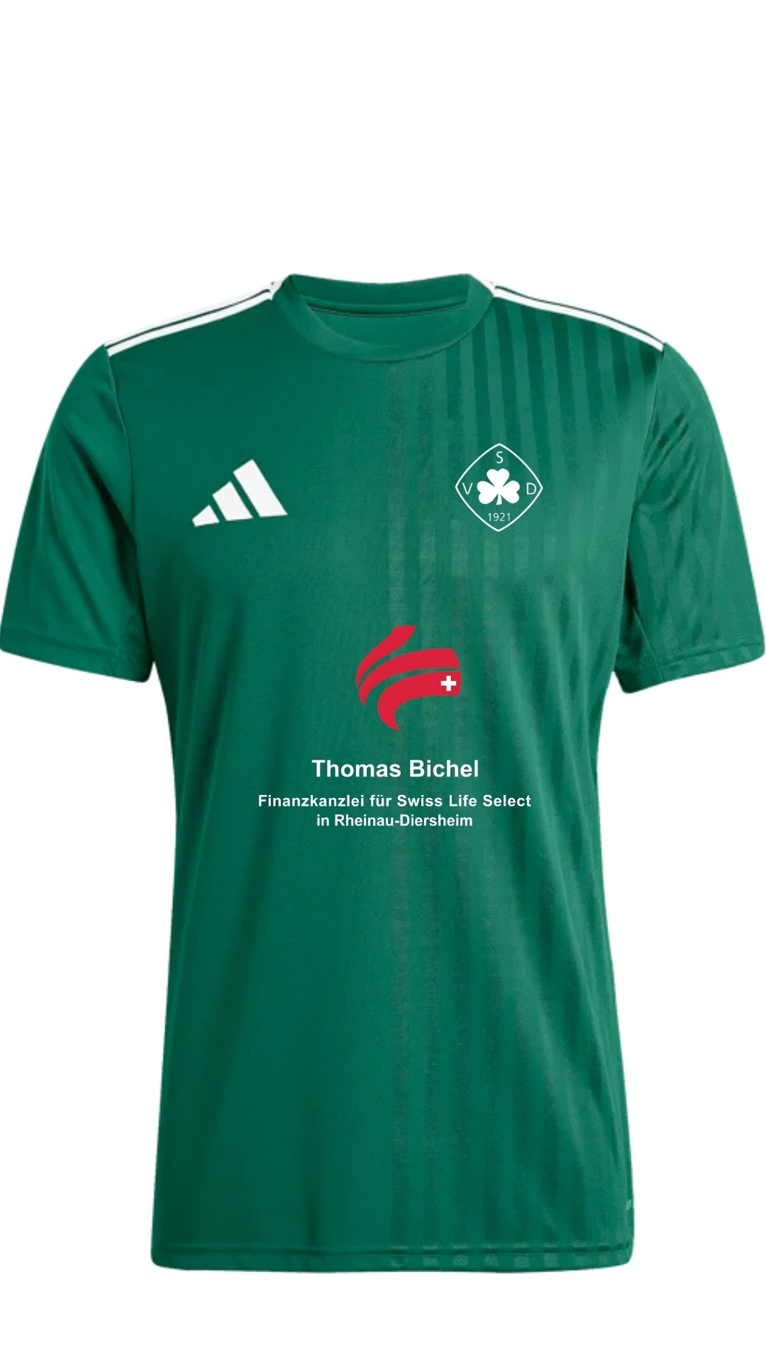 Vorne prangt stolz das SVD-Logo sowie der Sponsor Swiss Life, während auf der Rückseite dein Wunschname und deine Lieblingsnummer zusammen mit dem Vereinsnamen Platz finden.