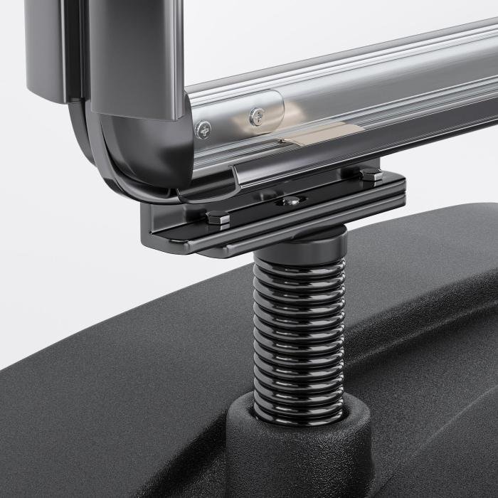 - Robuste Stahlfedern Bestandteil unseres Kundenstopper für den Outdoor-Bereich sind ebenfalls robuste Stahlfedern. Jeweils 1 von diesen auf jeder Seite helfen dem Seattle auch bei stärkerem Wind robust und standhaft zu sein. Durch die starken Stahlfedern schwingt der Rahmen im Wind mit und kippt nicht um (bei stärkeren Winden empfehlen wir unbedingt die Befüllung des Standfußes).